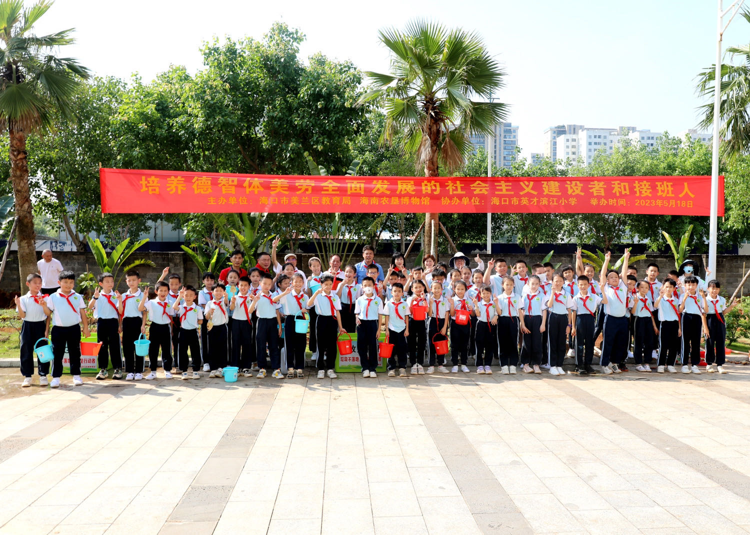 5月18日,海南农垦博物馆联合海口市英才滨江小学,开展“厚植家国情怀我与胶苗共成长”—让农垦文化走进校园,结合2023年学习贯彻习近平新时代中国特色社会主义思想主题教育及爱国主义、艰苦奋斗精神教育、学生爱劳动研学实践教育,切入学生演绎爱国故事及微课堂开讲、天然橡胶科普巡展、小学生栽培橡胶苗、垦博和学校主题党日活动等四大板块内容,提升学生对天然橡胶国家战略定位、橡胶维系国家安全战略意义的认识,对海南农垦因胶而生、因胶而兴、艰苦创业历史的了解,弘扬红色文化、传承红色基因,培养学生的爱国情怀、正确劳动价值观和良好劳动品质。